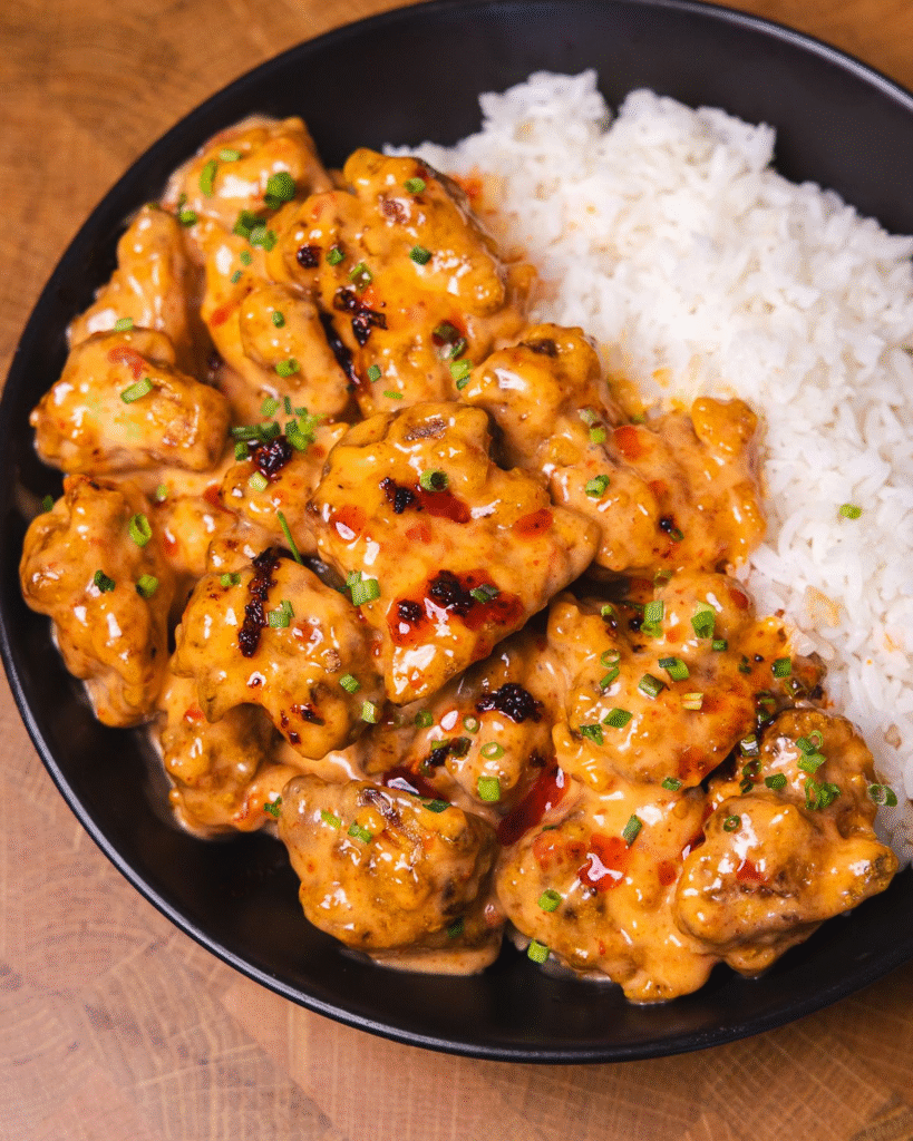 The “bang bang” part now refers more to the bold flavor explosion than the sound of tenderizing meat. While restaurants like Bonefish Grill made it famous as an appetizer with shrimp, the chicken version is just as addictive — maybe more.