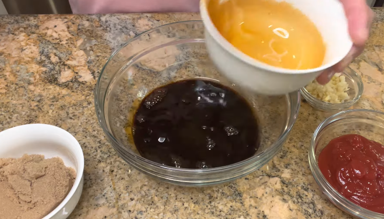 In a bowl, whisk together pineapple juice, soy sauce, ketchup, brown sugar, vinegar, ginger, garlic, and sesame oil. Taste it—you’ll know right away it’s going to be good.