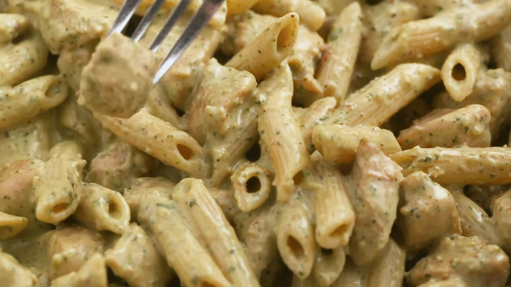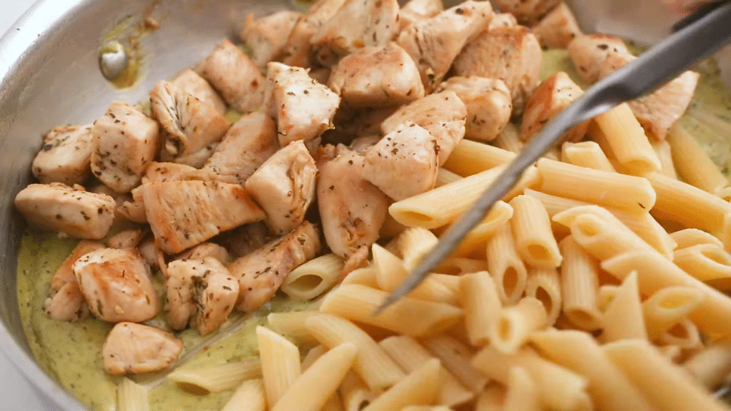 And wow, it turned into something magical. The creamy pesto, the juicy chicken, and that little crunch from the veggies — it was love at first bite.