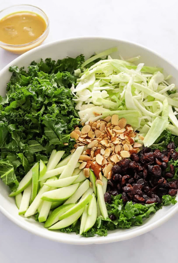 Here’s the thing: anyone can chop kale and cabbage. What really sets this salad apart is the apple cider Dijon dressing. The genius lies in how it balances opposites: