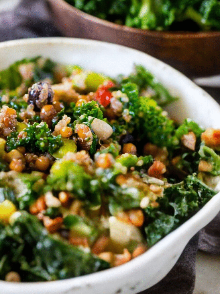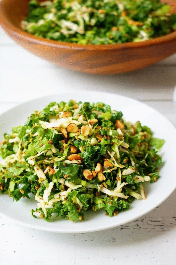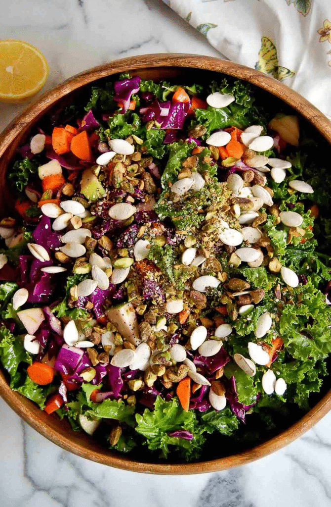 In a large bowl, mix the kale and cabbage. Pour the dressing over and toss until everything is lightly coated. Don’t drown it—this salad shines when the greens still have some crispness.