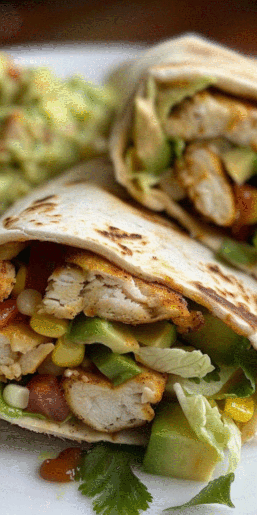 Here’s my real-life confession: when I’m too hungry to even think, I use store-bought grilled chicken strips, mash avocado straight in the tortilla, dump in some greens and cheese, roll, and eat — all in under 5 minutes.