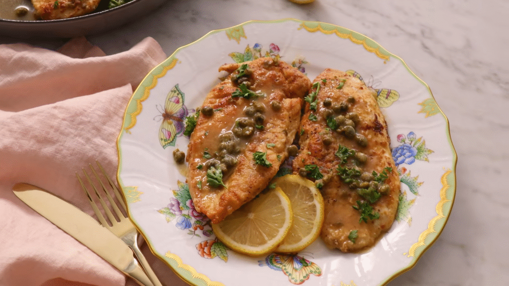 A little fancy, but still simple enough for a weeknight. Chicken cutlets are cooked in a lemony butter sauce with capers — bright, tangy, and rich at the same time.