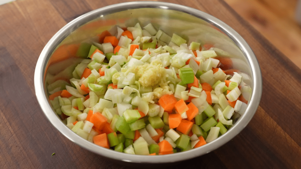 Heat butter and olive oil in a big pot over medium heat. Add onions, garlic, carrots, and celery. Cook for 5–7 minutes until soft and fragrant. This step builds the flavor base—don’t rush it.