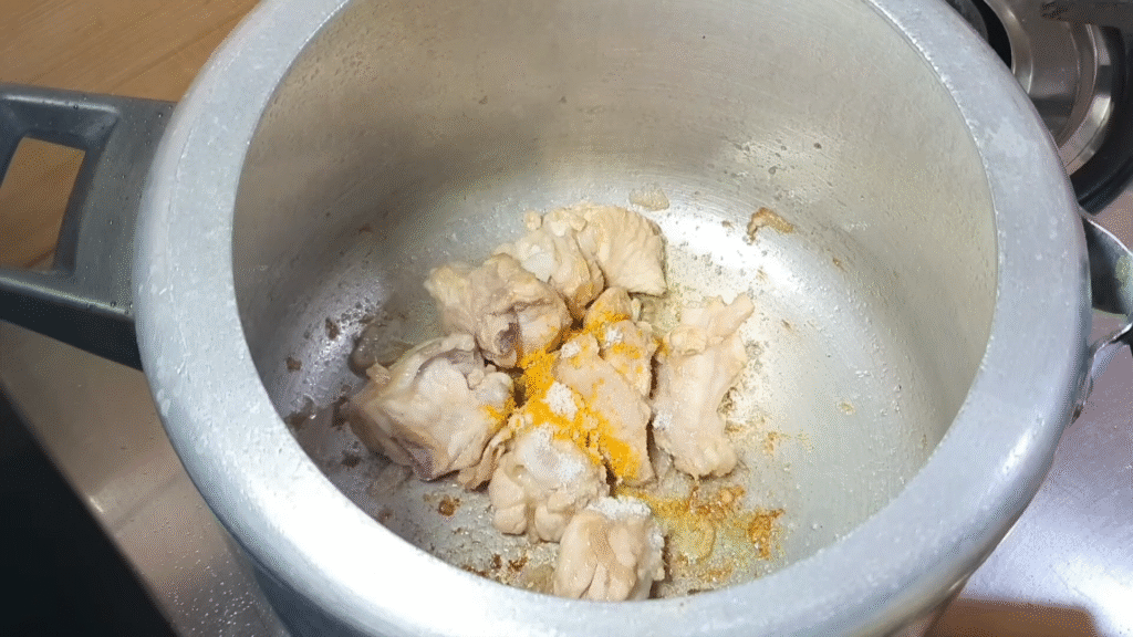Start with fresh chicken. If you’re using a whole chicken, wash it and cut it into large pieces. The bones add flavor, so don’t throw them away.