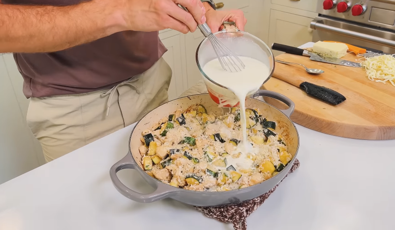 For the zucchini, I recommend slicing them thin because they cook faster and blend nicely with the creamy base. I like to sauté them for a few minutes in a pan with olive oil before mixing them into the casserole. It keeps them from getting soggy and gives them a little extra flavor.