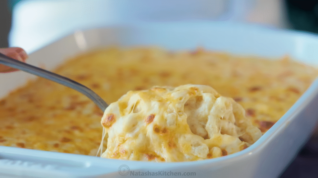 Let’s be honest — kids and adults both go crazy for mac and cheese. I use a mix of cheddar and mozzarella for that stretchy pull and bake it until it’s bubbly and golden on top. It’s comfort in a casserole dish.