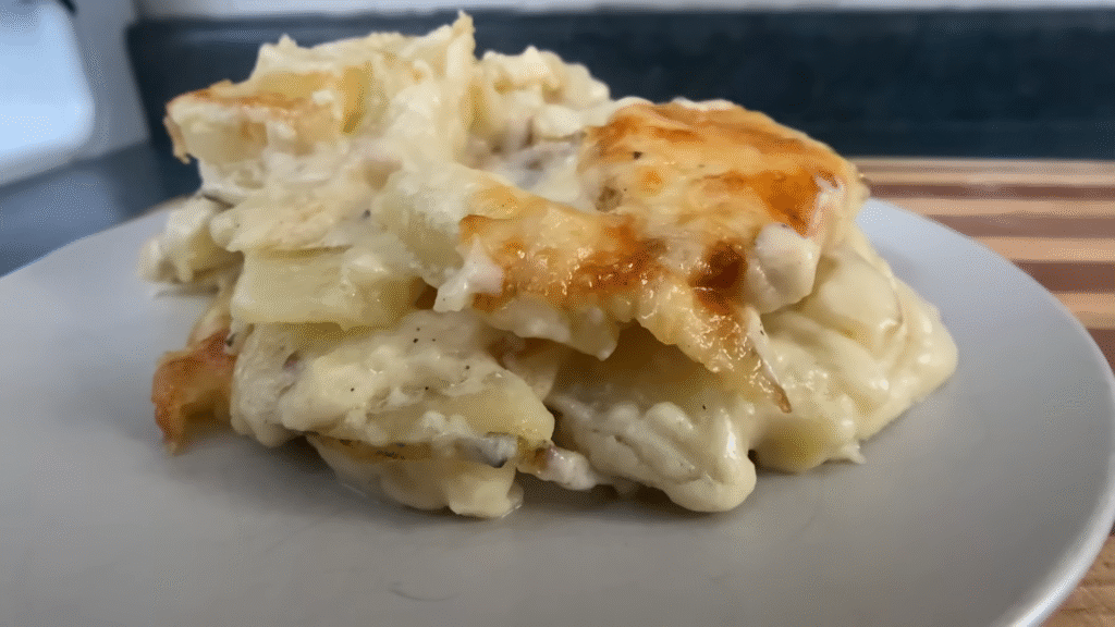 Layers of potatoes baked with cream, cheese, and a sprinkle of herbs — this one’s always a crowd-pleaser. It’s rich, cozy, and pairs beautifully with turkey or ham.