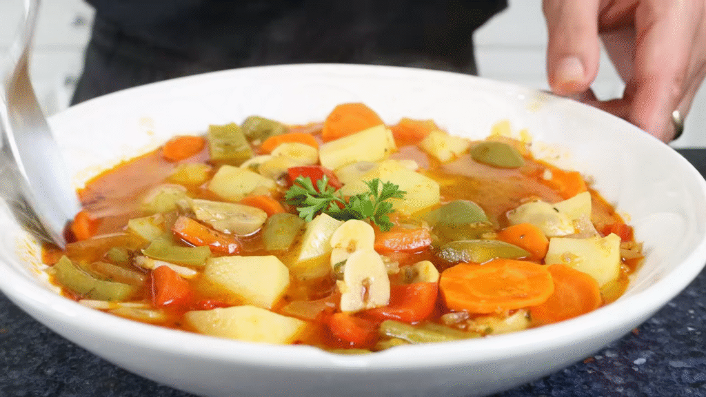 Even if you’re skipping meat, you deserve that cozy feeling too. This veggie stew is thick, colorful, and packed with vitamins. I use carrots, potatoes, zucchini, and beans, but you can throw in whatever you’ve got. It’s healthy comfort without losing the “mmm” factor.