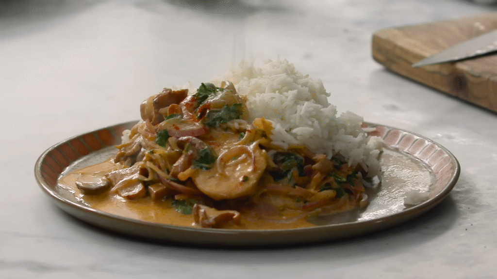 This one’s for mushroom lovers. It’s earthy, creamy, and loaded with umami flavor. I usually make it on nights when I’m craving something fancy but don’t want the fuss. Serve it over egg noodles—it’s heaven on a plate.