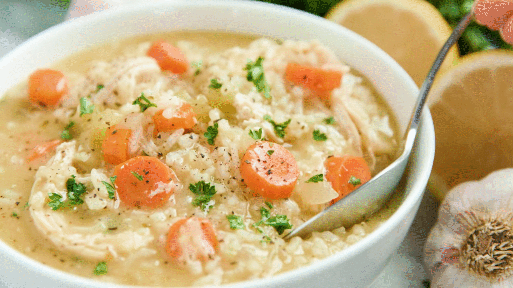 This soup is what I call “blanket in a bowl.” Tender chicken, creamy broth, and soft rice—each spoonful feels like comfort itself.