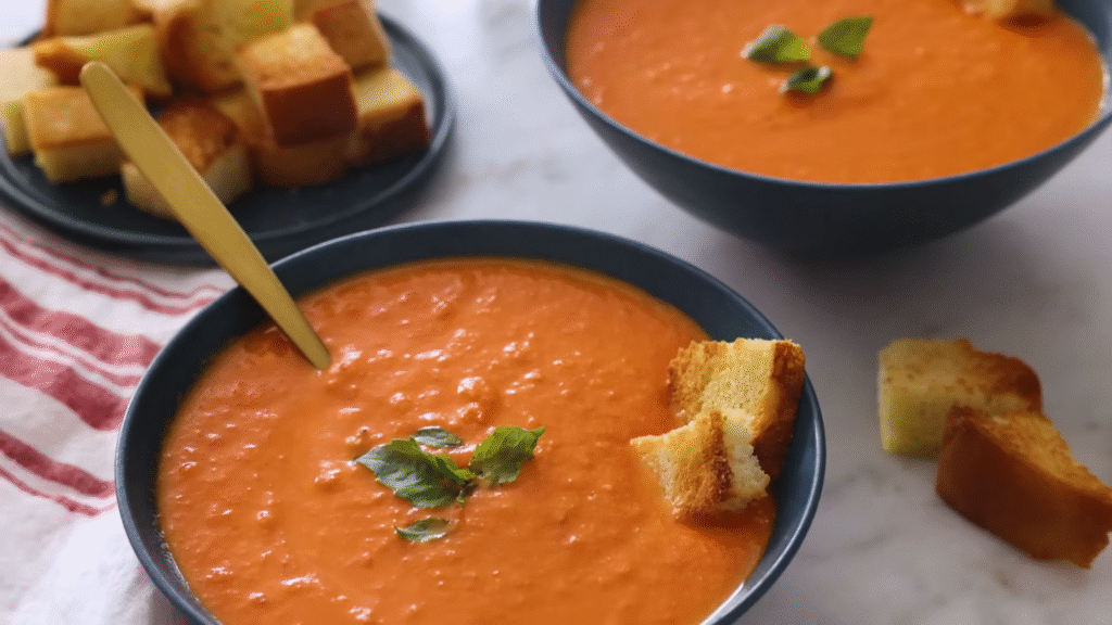 Let’s end on a timeless favorite. Tomato soup and grilled cheese—they just belong together. The creaminess of the soup mixed with the crispy, cheesy sandwich makes the perfect combo for a cold night in. It’s simple, nostalgic, and absolutely satisfying.