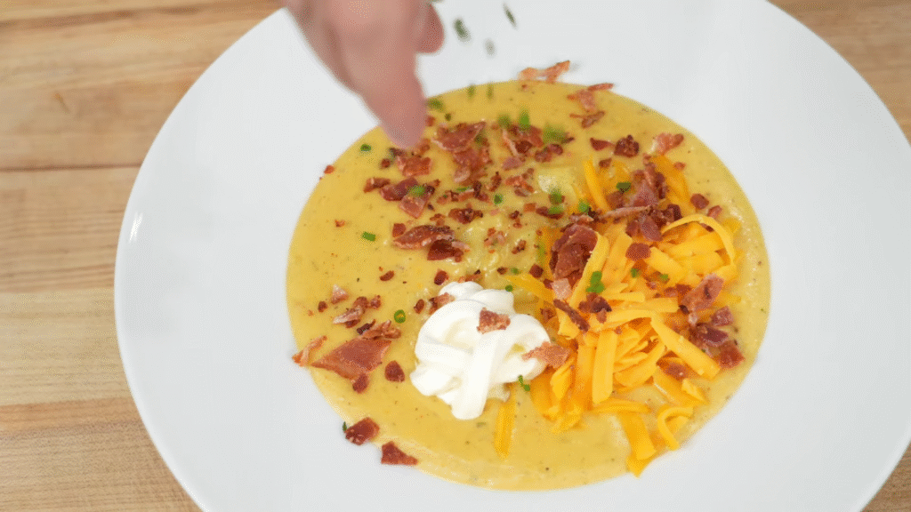 Imagine your favorite baked potato… now imagine it in soup form. Creamy, cheesy, and topped with crispy bacon bits—yes, please! I make this when I’m too tired to cook something fancy but still want that “wow” feeling at dinner. It’s comfort made simple.