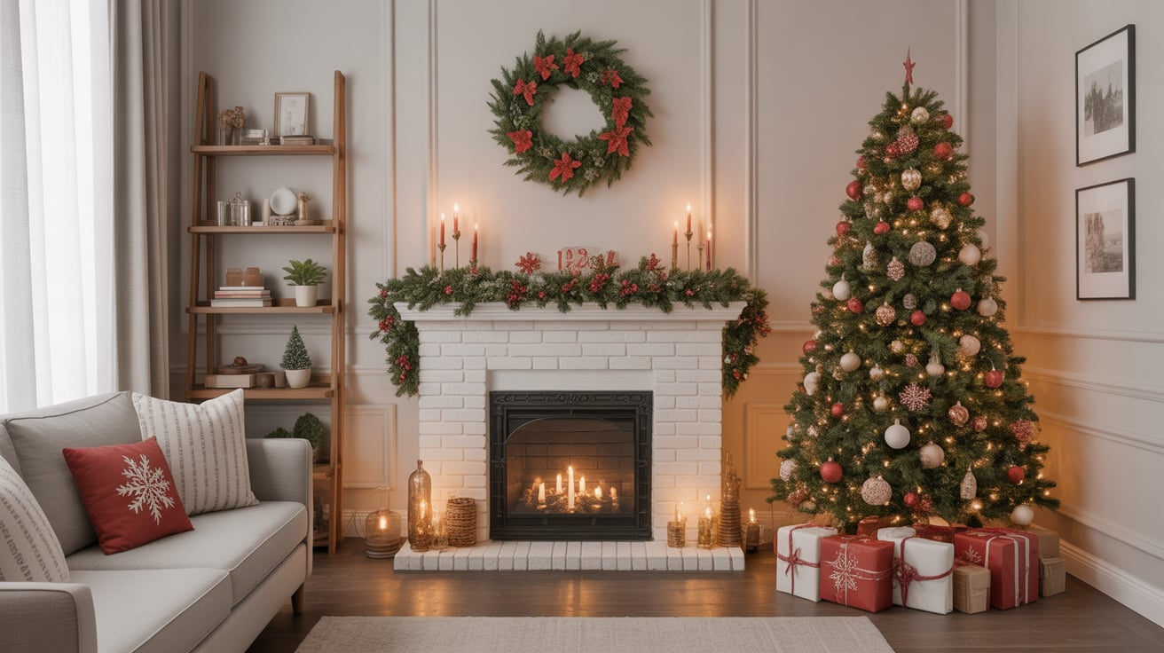 If you’ve got a fireplace, it’s the heart of Christmas. Drape greenery garlands, stockings, and fairy lights across the mantel. Even if you don’t light the fire, add candles or battery-lit logs—it’ll still feel warm and cozy.