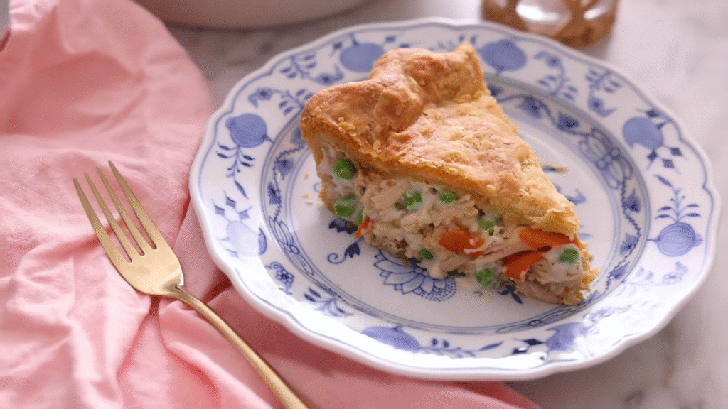 This dish feels like a warm hug. The flaky crust, creamy filling, and tender chicken make every bite irresistible.