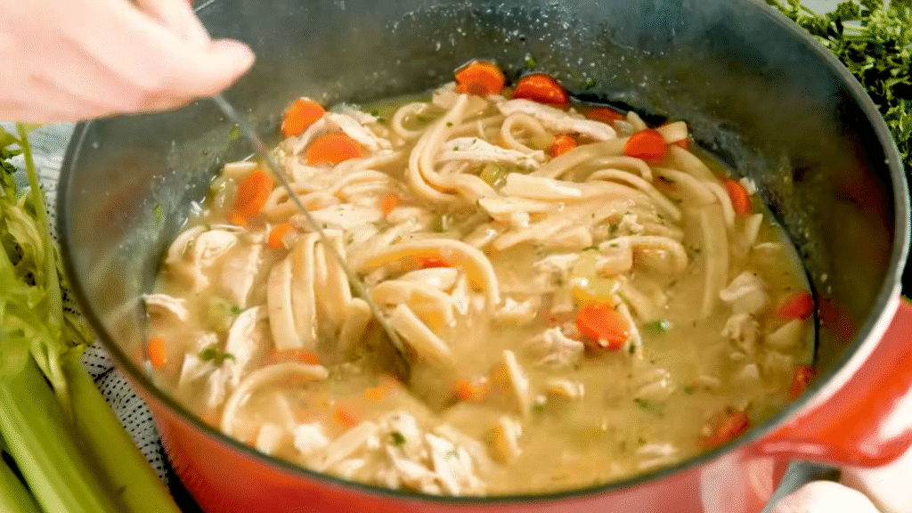 Sometimes, you just want something that feels like a hug. That’s this soup. Tender chicken, soft noodles, carrots, and a flavorful broth — it’s everything cozy and familiar. I always make a big pot and keep leftovers for the week.
