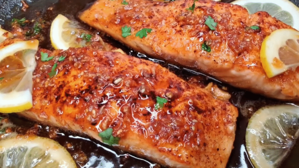 If you want dinner ready in under 20 minutes, this one’s your hero. The salmon is seared until golden, then coated with a sweet and garlicky glaze that makes you want to lick the spoon. Pair it with rice or roasted veggies. It’s healthy, quick, and full of flavor.