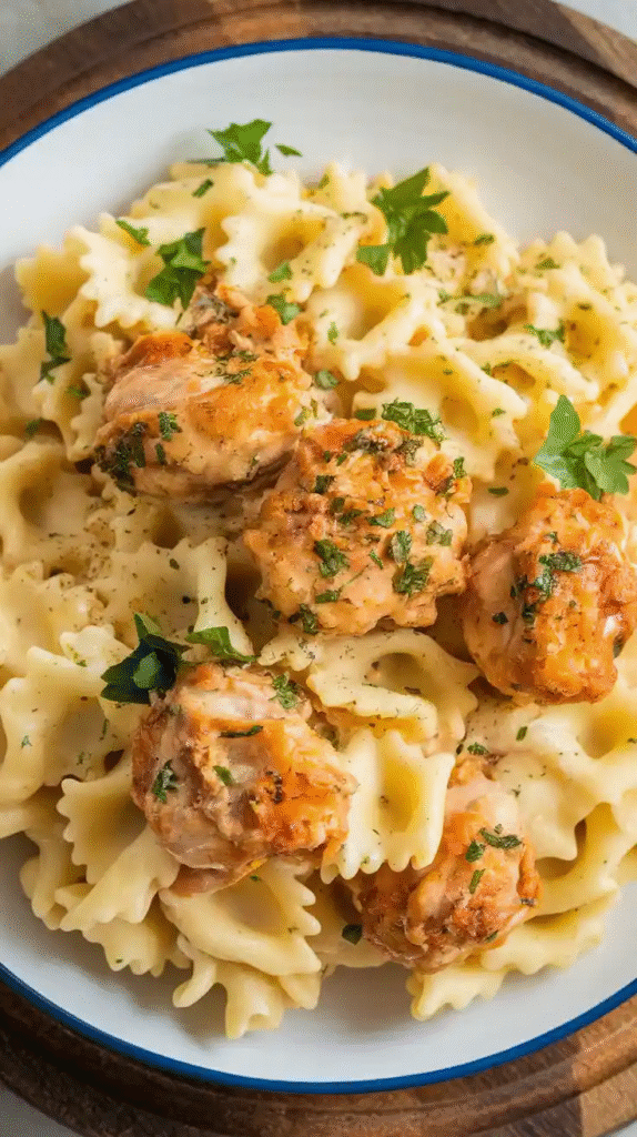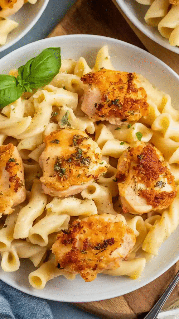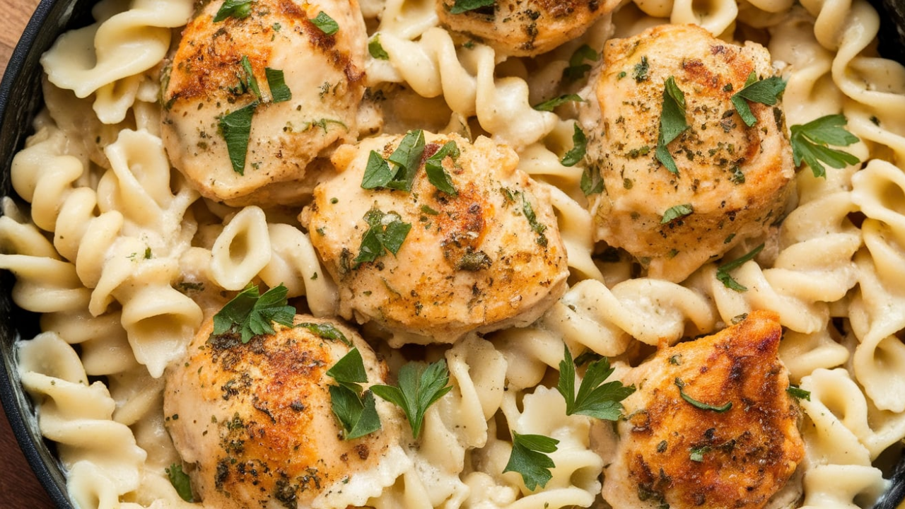 If there’s one dish that feels like a warm hug on a plate, it’s this — Garlic Butter Chicken Bites with Creamy Parmesan Pasta. In just 35 minutes, you can go from craving something hearty to twirling creamy, cheese-coated pasta around your fork with juicy, golden-brown chicken on top. This is weeknight dinner magic: quick enough for a Tuesday, impressive enough for a Saturday dinner with friends.