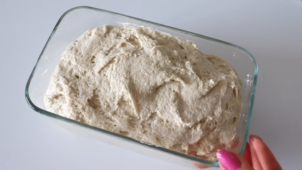 The dough should be thick but sticky—more like cake batter than regular bread dough.