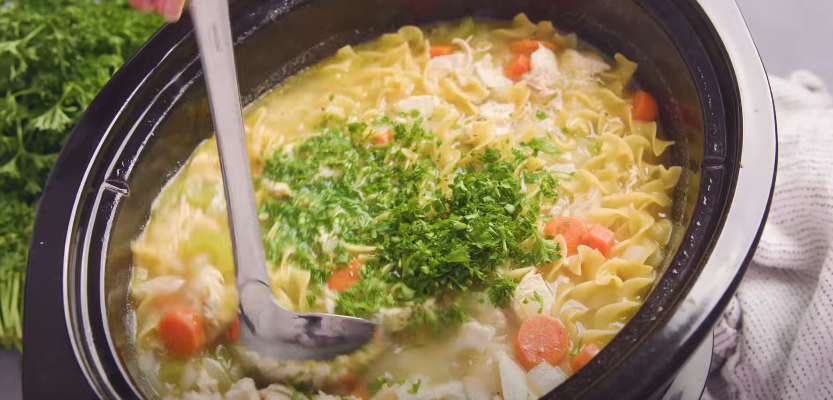 Chicken soup is the hug-in-a-bowl we all need sometimes. Toss chicken, carrots, celery, onions, and spices in the slow cooker, and let it do its magic. It’s light, nourishing, and perfect for when you’re feeling under the weather.