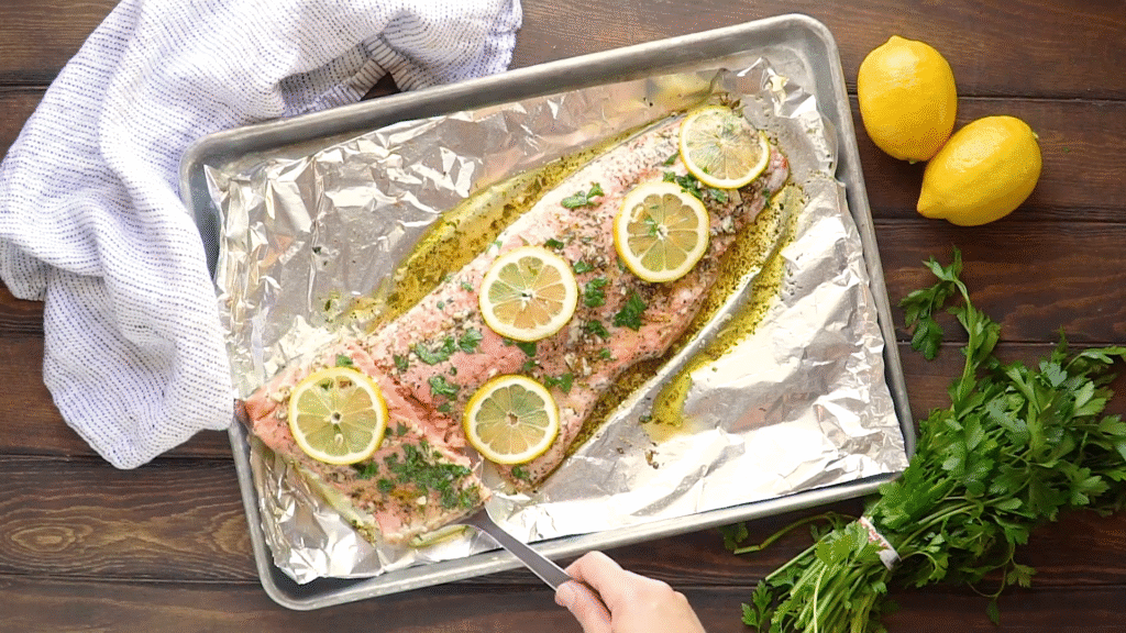 I just season it with olive oil, garlic, lemon, and herbs, then bake until flaky.
