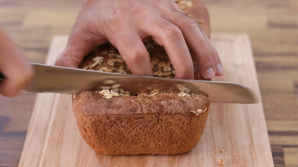 This one feels like a warm hug in loaf form. It’s slightly sweet, super soft, and has a lovely chew from the oats.