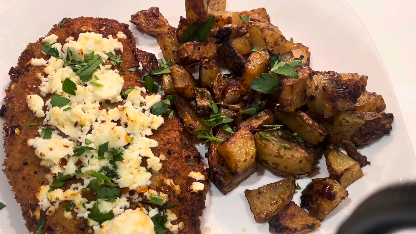 Once the chicken is done, sprinkle crumbled feta right on top. Let the heat soften it slightly.
