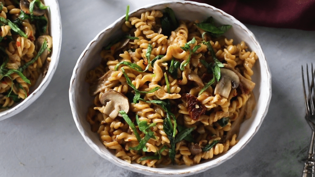 When I’m too tired to deal with dishes, this is my go-to. Everything — pasta, sauce, veggies, and chicken — cooks in one pot.