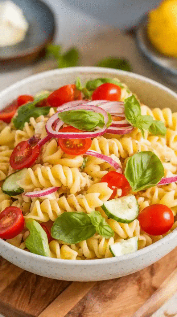 Whether you’re meal prepping for the week, hosting a summer BBQ, or just need a fridge-friendly side that tastes better by the hour, this salad hits all the right notes. Tangy lemon, peppery basil, a touch of garlic, and perfectly al dente pasta—this dish is proof that simple food can still slap.