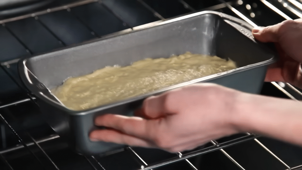 Pour the batter into your prepared loaf pan. Bake for 50–60 minutes, or until a toothpick comes out clean from the center.