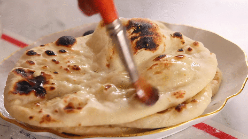 As soon as it’s off the pan, brush it with melted butter or garlic ghee. This step gives it that irresistible glossy, buttery finish.