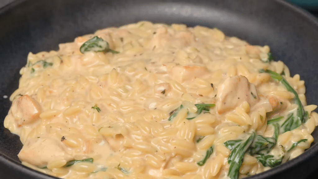 It’s all about balance. The orzo gives that creamy texture, the chicken adds protein and substance, and the Parmesan brings saltiness and depth.