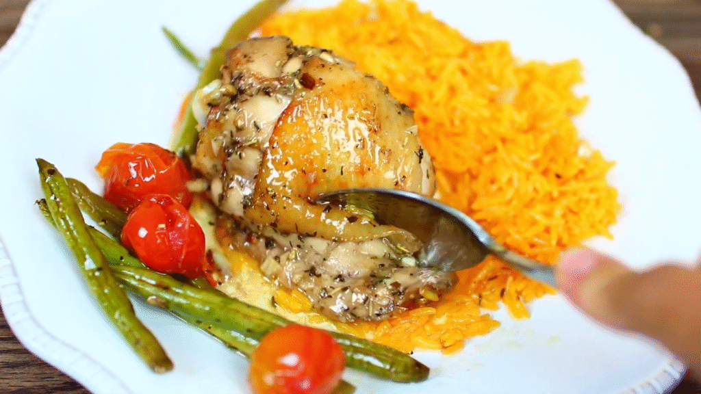This one’s my weeknight hero. Imagine juicy chicken cooked in buttery garlic goodness with colorful veggies soaking up all that flavor — all done in one pan. Less cleanup, more flavor.
