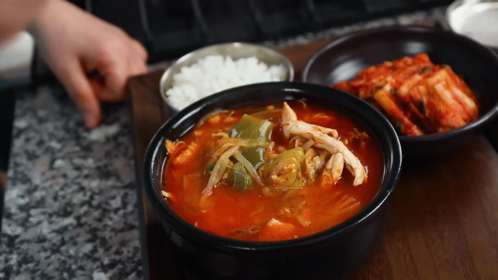 This isn’t one of those boring, bland chicken soups. Every spoon is packed with flavor — garlic, ginger, chili, and juicy chicken.
