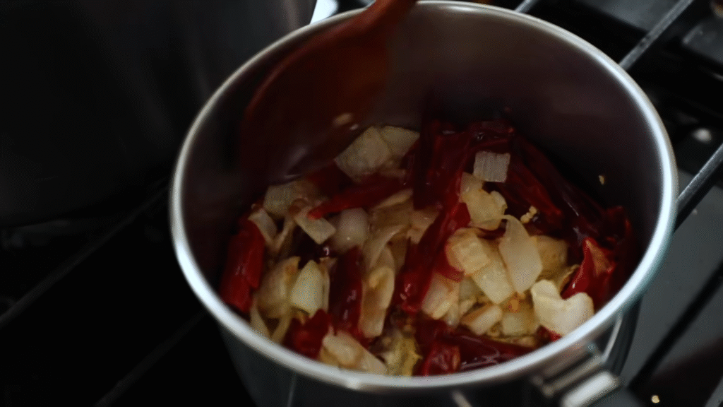 In the same pot, toss in chopped onions, garlic, and ginger. Sauté for 2–3 minutes until everything smells amazing. This is the base of your flavor.
