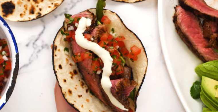 13. Steak Tacos with Lime Crema
