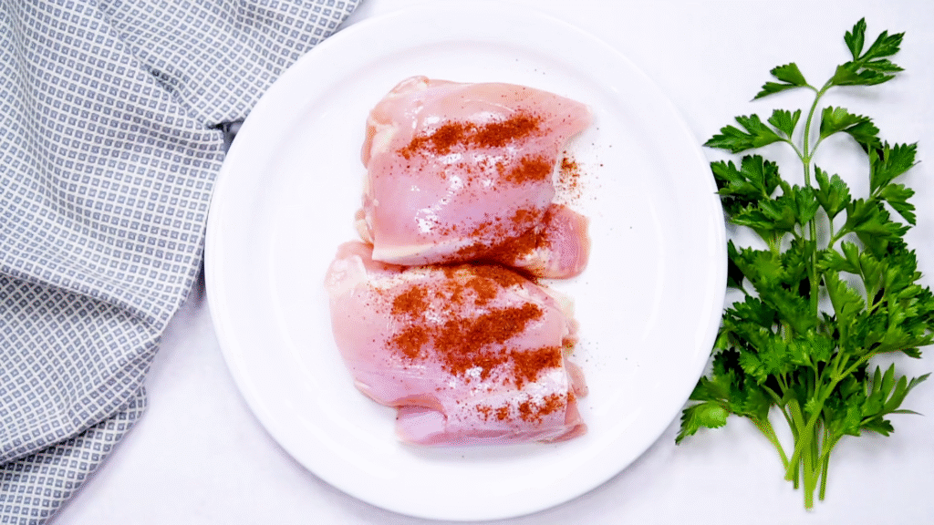 Sprinkle all the seasonings on both sides of the chicken. Rub them in gently so the flavors stick. Don’t skip this — good seasoning is what makes the chicken taste restaurant-quality.
