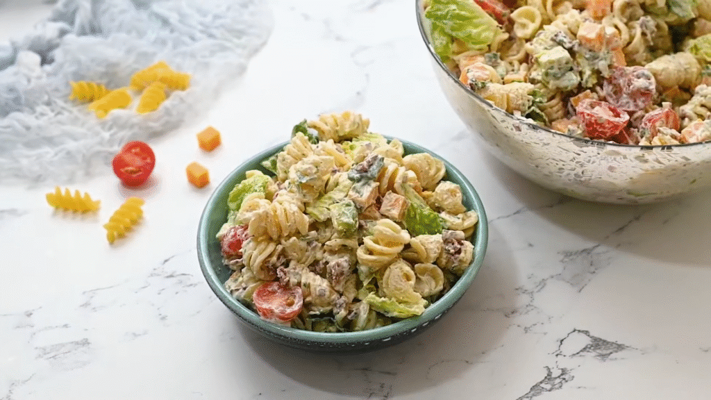 This one screams summer! Cherry tomatoes, mozzarella, fresh basil, and a drizzle of balsamic glaze tossed with pasta — so refreshing. I love how easy it is to make, and it’s great for picnics or potlucks. You can even add grilled chicken or shrimp for extra protein.