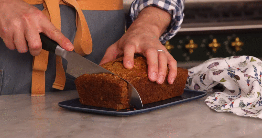 Let it cool for about 10–15 minutes before slicing. Trust me—this part’s hard because it smells so good. But if you cut too early, it’ll crumble. Patience pays off!